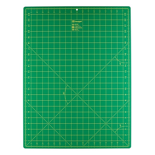 Коврик также удобен для замеров ткани: лицевая его сторона снабжена сантиметровой разметкой, изнаночная – дюймовой. Таким образом, с помощью коврика для раскроя можно легко кроить детали в дюймах, не пересчитывая их длину в сантиметры!