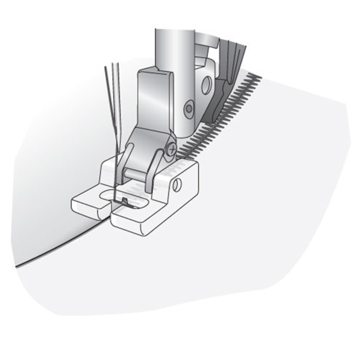 С помощью этой лапки можно пришить аппликации к изделию красивым узким плотным швом. Благодаря своим небольшим размерам и прозрачной подошве, лапка позволяет следить за выполнением стежков. В работе с этой лапкой можно использовать строчки, имитирующие ручное пришивание аппликаций, чтобы создавать аппликации или красивые лоскутные панно, похожие на сшитые вручную.