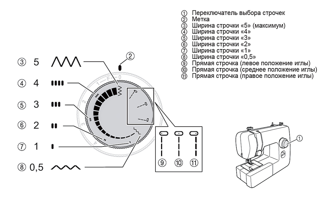 Швейна машина може виконувати пряму і зигзаг на будь-яких типах тканин (щільних або тонких).