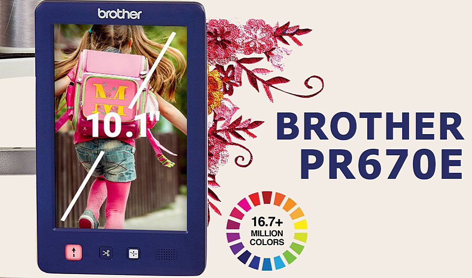 Вишивальна машина Brother PR 670 E обладнана великим сенсорним РК-дисплеєм з діагоналлю 10,1 дюйма. Такий екран дисплея дозволяє комфортне редагування вишивального дизайну, ознайомленням з інструкцією або створенням унікальних комбінацій.