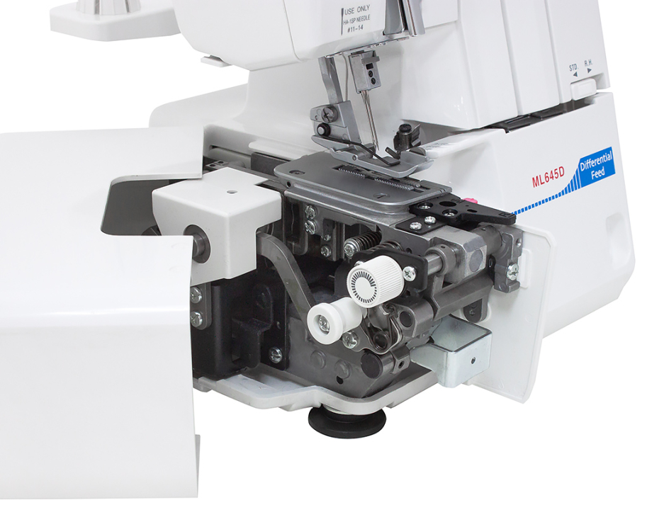 Функція диференціальної подачі дозволяє уникнути розтягування або збирання матеріалу, а регулювання притиску лапки допомагає ідеально обробляти як легкі, так і важкі тканини.