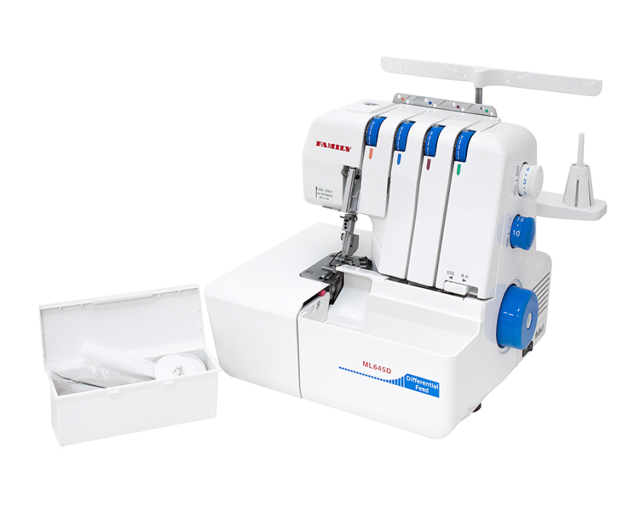 Модель FAMILY ML 645D випускається понад 15 років: розробка виконана в Японії, збирання - на Тайвані. За час виробництва оверлок отримав оновлений сучасний дизайн (зараз у біло-синіх тонах), зберігши при цьому свою головну цінність — надійність та стабільну роботу.