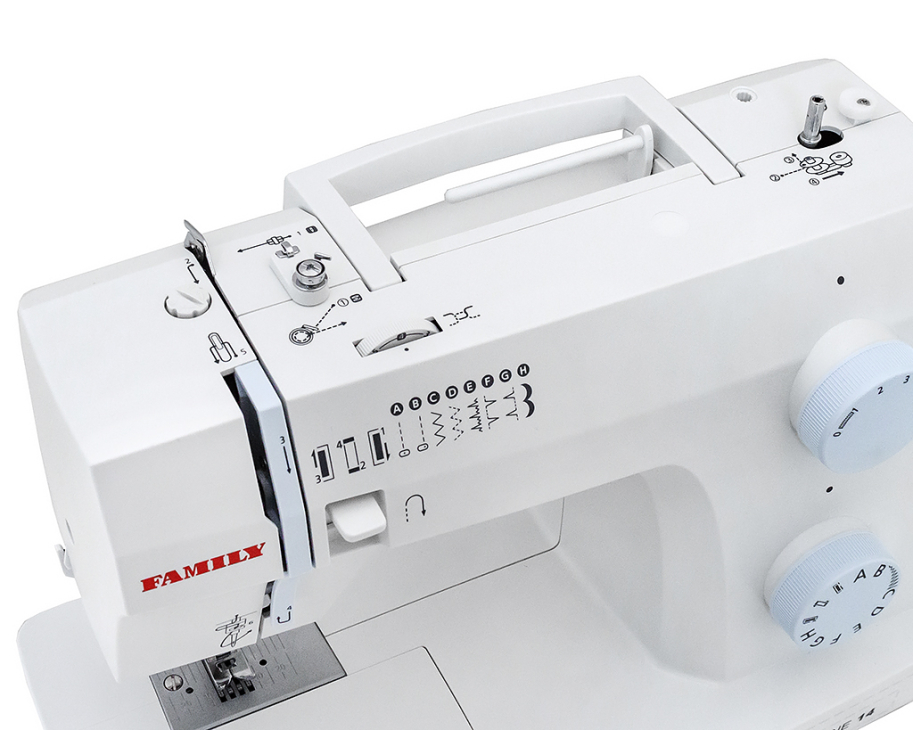 Електромеханічна швейна машина FAMILY HOBBY LINE 14 - це практична, надійна і зручна модель для домашнього використання, яка ідеально підійде користувачам-початківцям. Техніка розроблена відомим брендом FAMILY з урахуванням потреб новачків, тому поєднує просте керування, оптимальний набір функцій та сучасний зовнішній вигляд. Машина чудово справляється з ремонтом одягу, шиттям текстилю для дому та нескладними швейними проектами.