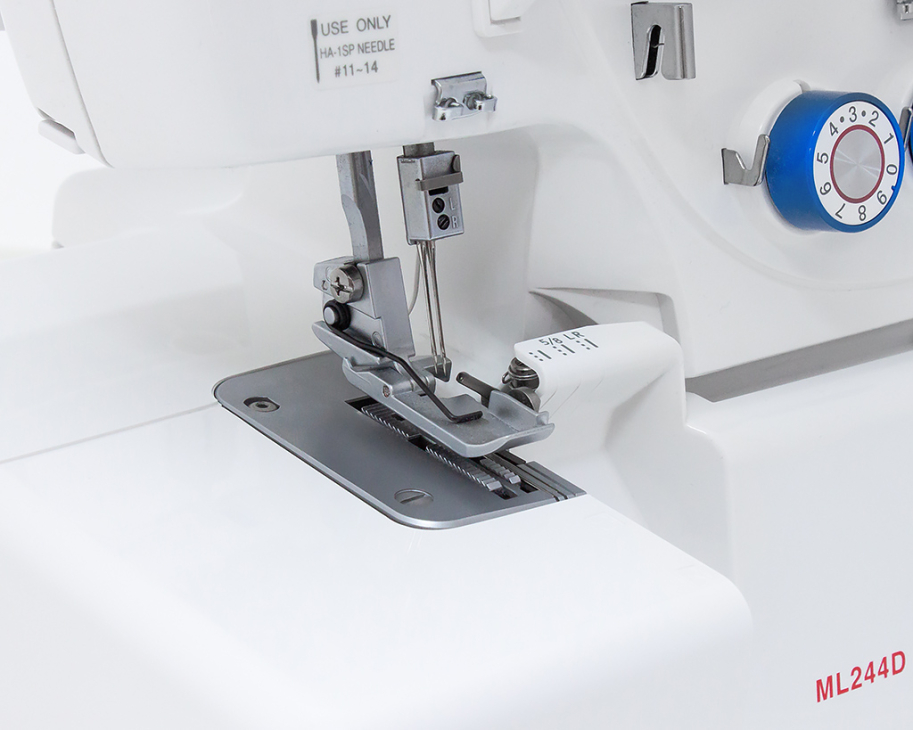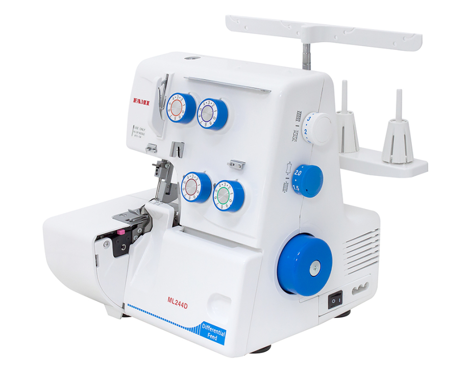 Оверлок Family 244D є моделью, яка може виконувати популярні роликові шви, обробку кромки «піко», а також робити різні зборки за допомогою спеціальної додаткової лапки.