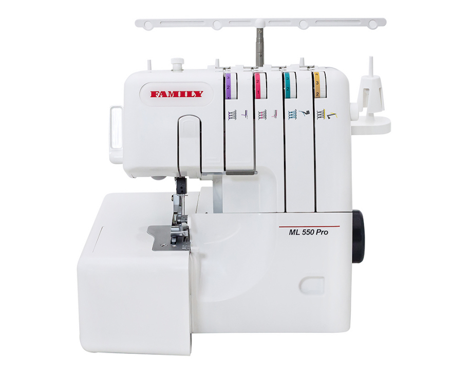 FAMILY ML 550 PRO — це надійний оверлок із серії професійних швейних машинок, що дозволяє швидко та якісно обробляти різні види тканин. Він підходить як для домашнього застосування, так і для майстерень з виготовлення одягу.