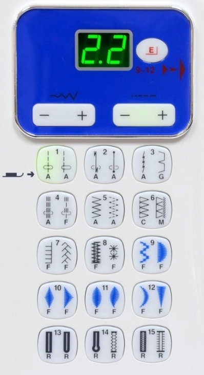 | Дісплей | 2 символи, відображення номера рядка або довжини стібка або ширини строчки |