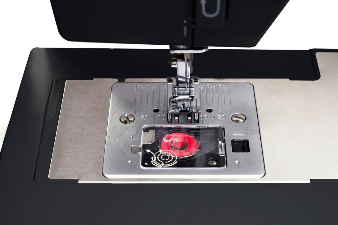 Додаткову надійність забезпечує металева основа корпусу, що підвищує стійкість машини під час роботи та збільшує термін її служби. Така конструкція гарантує стабільність рядка навіть за високої швидкості шиття.
