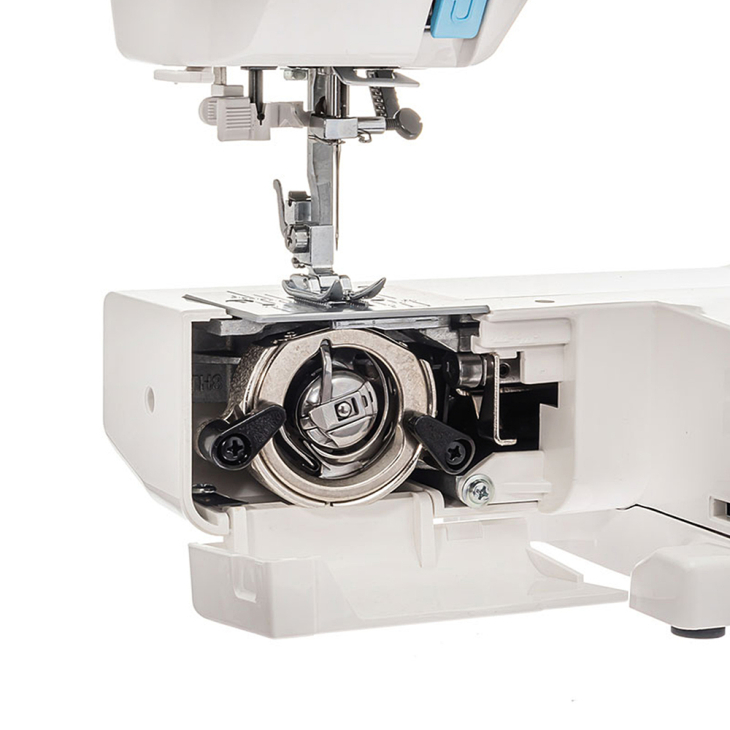 Крім доступної ціни та широких можливостей, JANOME A-25 порадує своїх господарів зручністю у використанні. Машинка оснащена вбудованим нитковдівачем і маркованою схемою заправки нитки, що значно полегшує цей рутинний процес. Авторегулювання притиску тканини є зручною опцією для новачків та досвідчених швачок і сприяє створенню ідеальних рядків без прогалин. Також тут присутній знімний рукав – незамінний пристрій для кругової обробки деталей. JANOME A-25 належить до категорії універсальних пристроїв – вона здатна однаково добре працювати з різними видами тканин. Крім того, на цьому обладнанні можна шити подвійною голкою, а також створювати машинну вишивку та виконувати штопку, чому сприяє наявність механізму опускання рейки просування тканини.