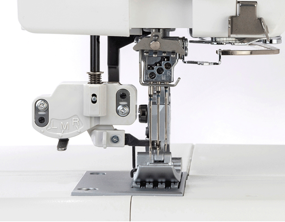 JANOME COVERPRO 3000 PROFESSIONAL має вбудований нитковдівач для всіх трьох голок - рідкісною, але вкрай корисною функцією. Перемикаючи важіль, ви легко заправляєте потрібну голку за лічені секунди.