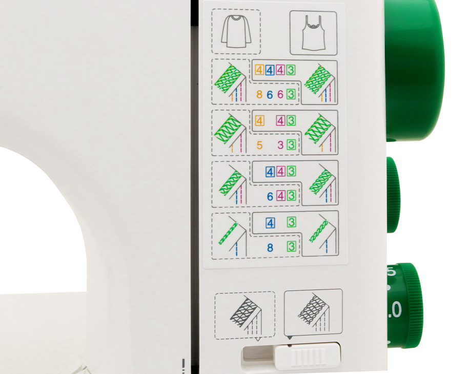 Модель багатофункціональна, зручна та надійна. Вона оптимально підходить для робіт з трикотажем, що вимагають 3-голкового, 2-голкового та ланцюгового стібка. Варіант стібка визначається характеристиками тканини.