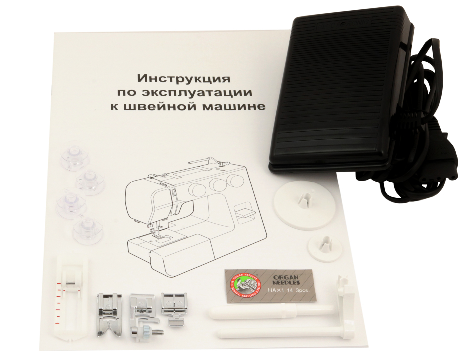 Оптимальна комплектація JANOME EXELLENT STITCH 18A вже в машині: запасні шпульки для різного кольору ниток, запасні швейні голки, інструменти, і звичайно, лапки для різних нескладних завдань. А якщо виникне бажання розширити можливості Вашої нової помічниці, магазин «Швейний світ» з величезним задоволенням Вам в цьому допоможе.