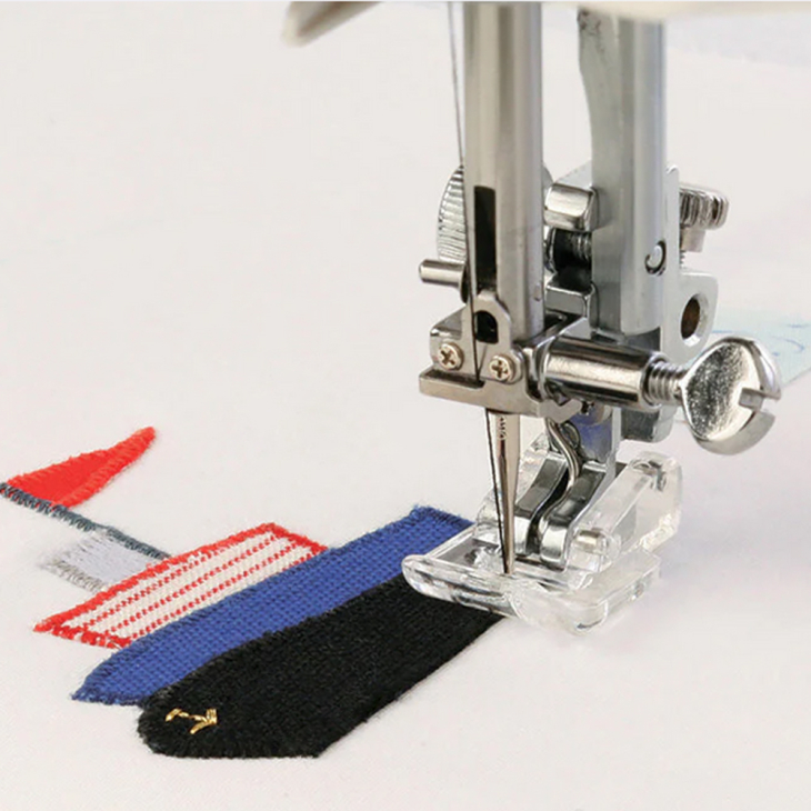 Ця притискна лапка коротша, ніж більшість лапок спеціально для кращого маневрування по краях під час пришивання аплікації. Лапка зроблена із прозорого пластику, щоб повністю контролювати процес шиття.