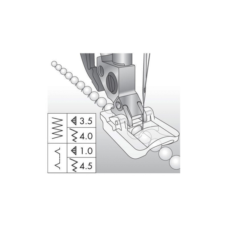 За допомогою цієї лапки ви зможете прикрасити будь-який виріб нитками бісеру або перлів. Намистинки будуть легко прослизати під лапкою в процесі пришивання.