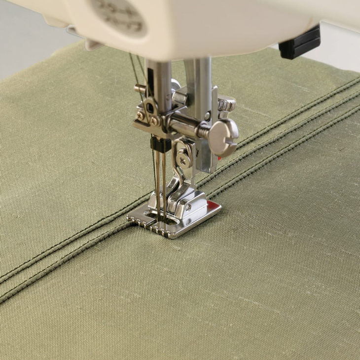 Невеликі защипи подвійною голкою дуже легко виконуються за допомогою лапки з жолобками на підошві. Защипи можуть використовуватися не тільки для обробки, але й для оригінального декорування на тонких тканинах.