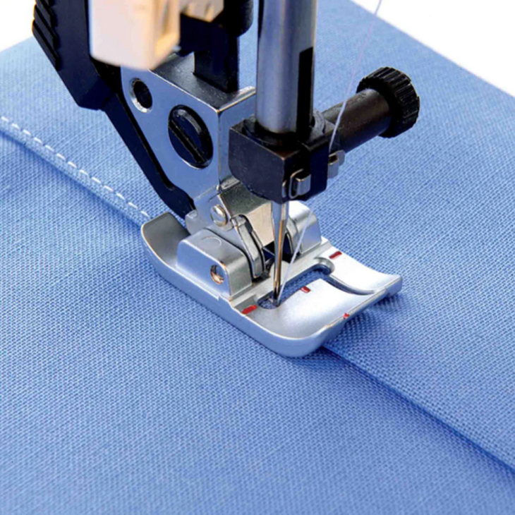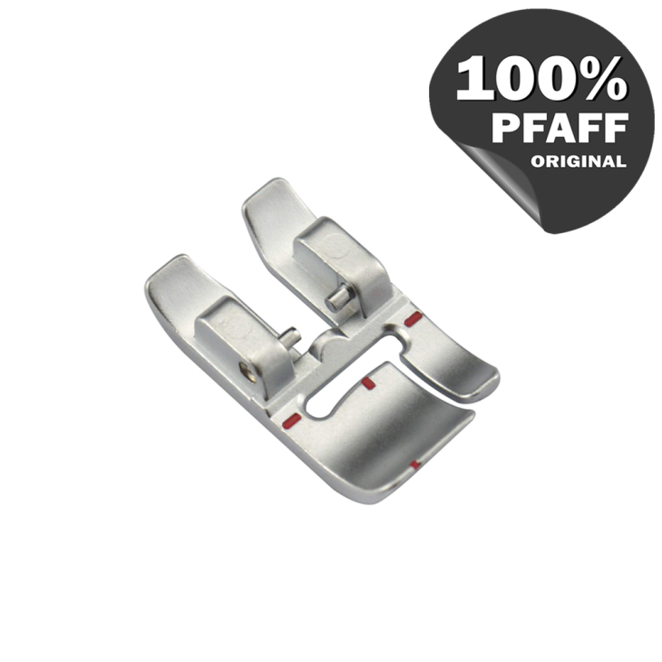 Ця лапка призначена для рівного відстрочення вздовж шва з перепадом висоти, а також відстрочення краю виробів із щільних об'ємних матеріалів. Підошва лапки має два рівні, що дозволяє складці на деталі виробу легко просуватися під лапкою. Використовуйте дворівневу лапку для створення підгинання на поясах, чохлах, штор, або для прокладання декоративного рядка вздовж об'ємних швів.