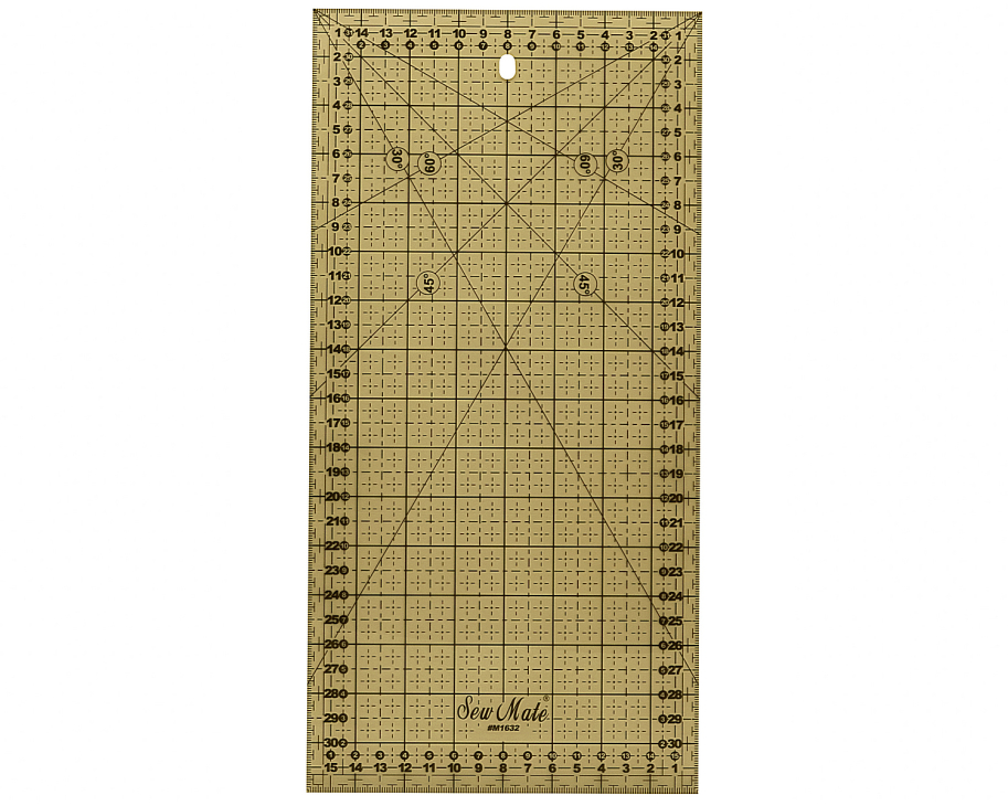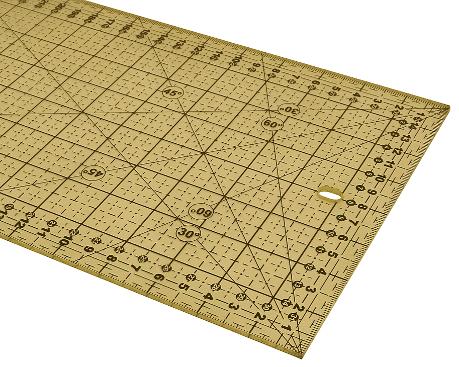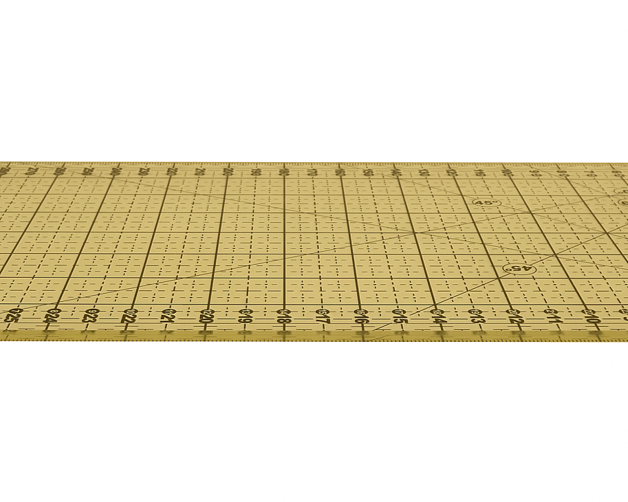 Товстий, зносостійкий матеріал гарантує надійне проведення розкрійних та макетних ножів за спеціальним килимком для різання. Лінійка має маркування кутів 30, 45 і 60 градусів для викроювання трикутників та ромбів, а також діагональних смужок.