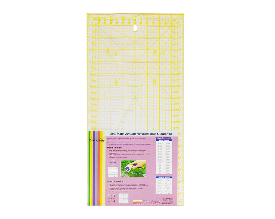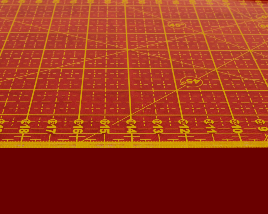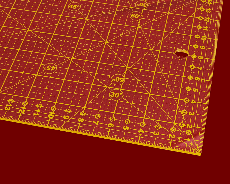 Товстий, зносостійкий матеріал гарантує надійне проведення розкрійних та макетних ножів по спеціальному килимку для різання. Лінійка має маркування кутів 30, 45 та 60 градусів для викроювання трикутників і ромбів, а також діагональних смужок.