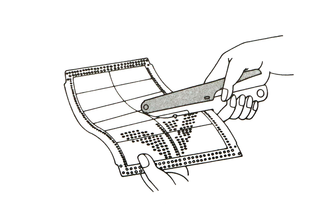 Так як перфокарта складається з 24 клітин у ряду, ви зможете покрити 12 клітин з одного боку, а після перевернути для подальшого перфорування ряду.