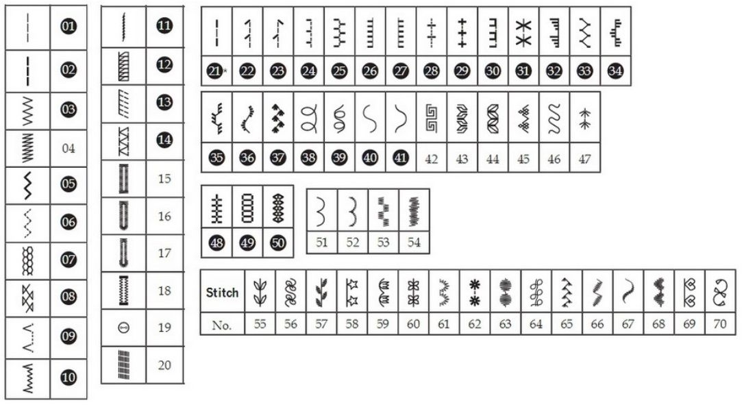 Швейна машина Pfaff Passport 2.0 дає можливість вибирати потрібну строчку з 70 варіантів (стандартні, оверлочні, декоративні та ін.).