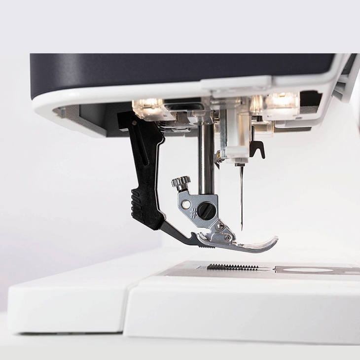 Однією з головних переваг машини є фірмова система верхнього транспортера IDT™. Ця технологія забезпечує рівномірне просування тканини згори і знизу одночасно, завдяки чому шви виходять охайними навіть на складних матеріалах — трикотажі, шовку, джинсі або багатошарових проектах. Верхній транспортер особливо цінують любителі пэчворка та професійні майстри, яким важлива точність з'єднання деталей.