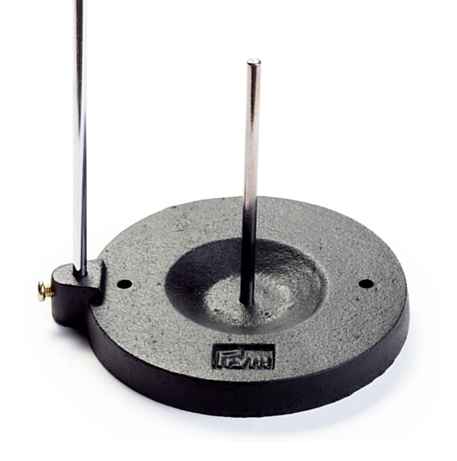 Підставка для великої котушки від Prym складається з чавунної основи з фіксуючим стрижнем зі сталі для вкручування та балкою, яка спрямовує нитку. Так при витратних швейних роботах не потрібно постійно одягати нову нитку в машину.