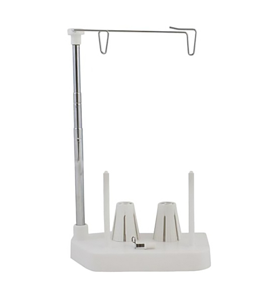 Стійка для 2-х котушок легко кріпиться на швейну машину Janome. Коли потрібно встановити велику котушку ниток або кілька кольорів для шиття подвійною голкою використовується ця стійка.